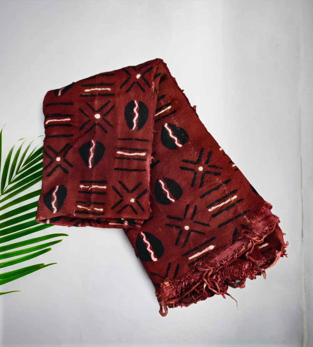 Le Bogolan Fanta se distingue par sa chaleur visuelle et son caractère fort. Sa couleur unique est obtenue à partir de pigments naturels issus de plantes et d’argile, selon un processus de teinture respectueux de la nature. Les motifs peints à la main symbolisent la féminité, la fertilité et la puissance spirituelle, en hommage aux femmes africaines et à leur rôle central dans la transmission des savoirs.